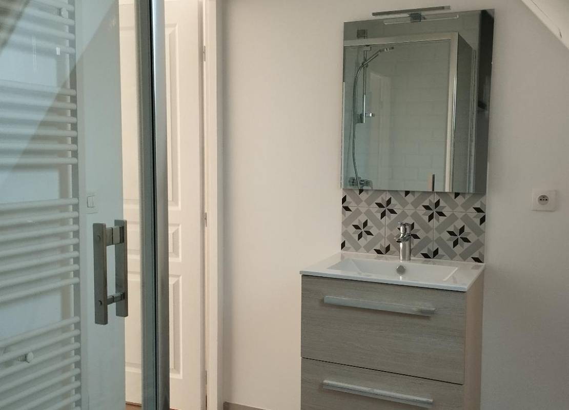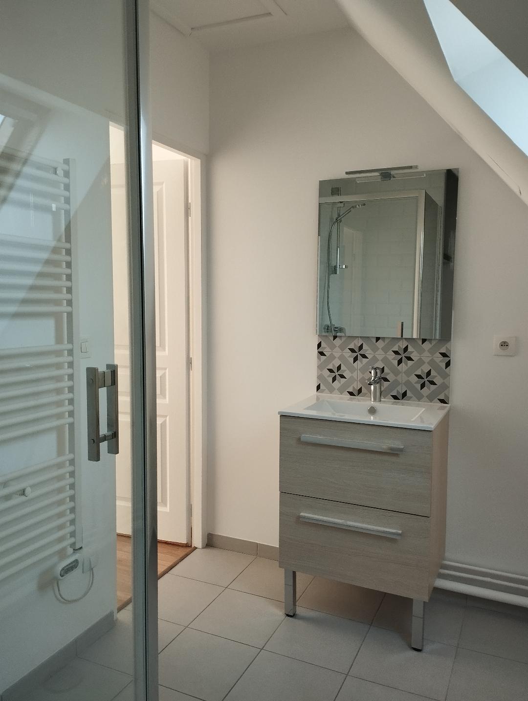 Descriptif: LES ANDELYS hypercentre : A LOUER LES ANDELYS Studio 22,83 m² refait à neuf au 2ème étage sans ascenseur, comprenant pièce à vivre avec cuisine équipée (évier, plaque induction, hotte, four) et salle de douche (lavabo, W.C., douche).